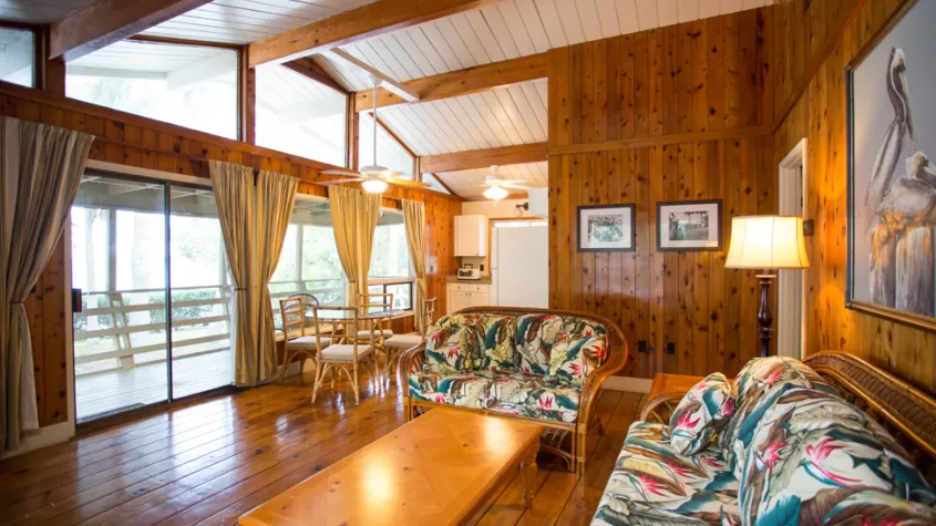 Our secluded island getaway offers visitors an atmosphere of friendly hospitality and old Florida vacation relaxation, totally void of commercialization. Our resort guests enjoy each other’s company, nature, fishing, shelling on nearby deserted beaches, reading, writing, painting, boating, and most of all quiet and tranquility. Of course, our restaurant and bar is a busy place as boaters from many ports stop in for breakfast, lunch or dinner. Well-known travelers frequent the lounge, famous for its festive atmosphere and unique decor.
